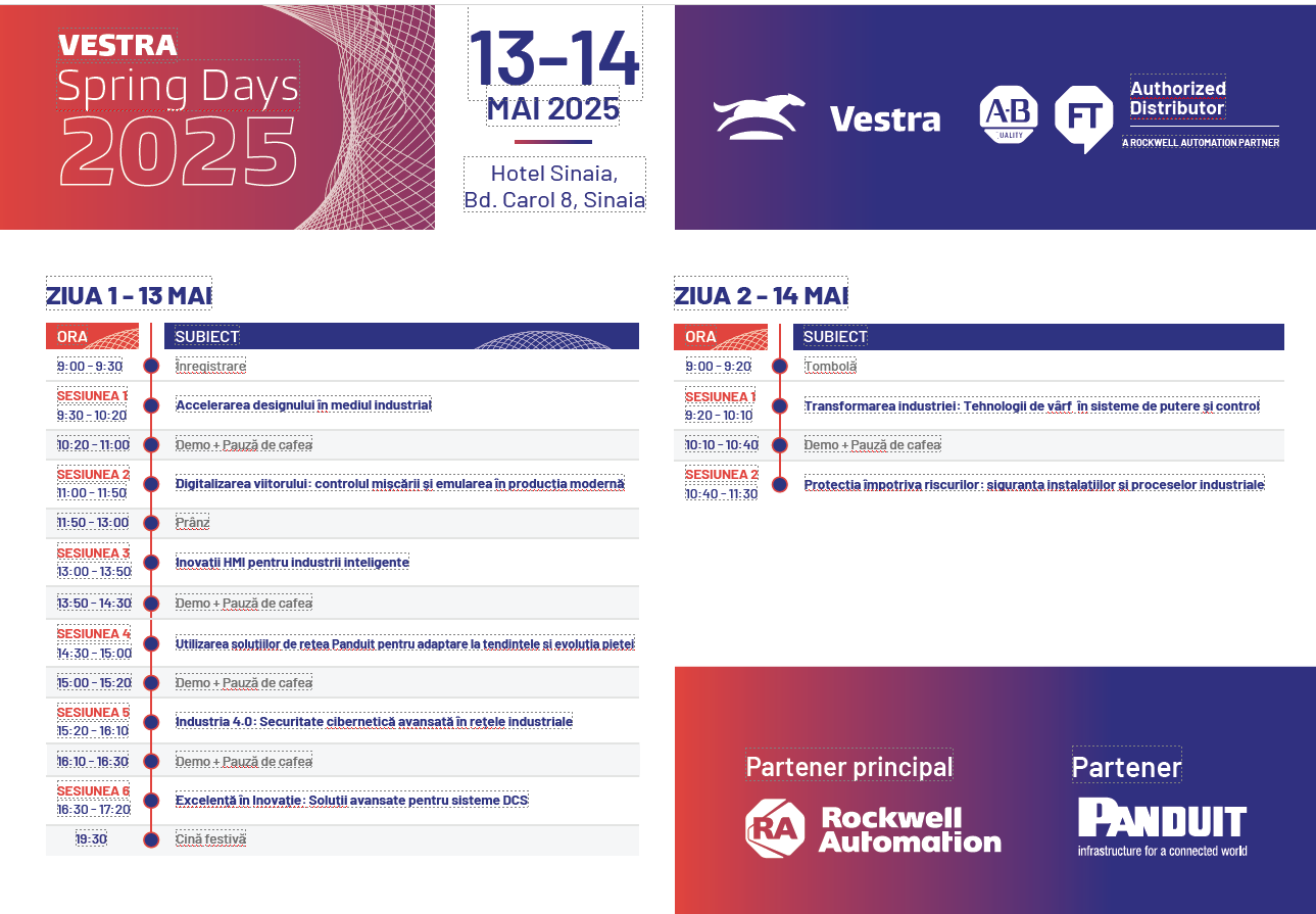 Vestra Industry, împreună cu partenerii săi, Rockwell Automation și Panduit, vă invită la Spring Days 2025,